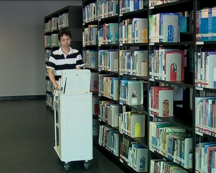 推車式盤點(diǎn)機(jī): 減輕館員工作強(qiáng)度,讓盤點(diǎn)更方便快捷。 人性化的觸摸屏,按鍵清晰、靈敏。防噪滑輪, 移動(dòng)輕松,零噪音設(shè)計(jì),更適合圖書館需求。 符合標(biāo)準(zhǔn):ISO 18000-6C 工作頻率:920MHz~925MHz 工作溫度:-20℃~+70℃ 數(shù)據(jù)存儲(chǔ)容量:≥120GB 功率消耗:<100W 架位標(biāo)簽閱讀距離:≥250mm 層位標(biāo)簽閱讀距離:≥150mm 通訊接口:RS 232和10100M Ethernet 無線網(wǎng)絡(luò):支持802.11bg無線網(wǎng)絡(luò)協(xié)議 觸摸屏顯示器:12寸液晶顯示器 操作界面:圖形化操作界面,中英文顯示 檢索功能:可進(jìn)行多級、快速的檢索 設(shè)備可靠性(MTBF):>10000小時(shí) |